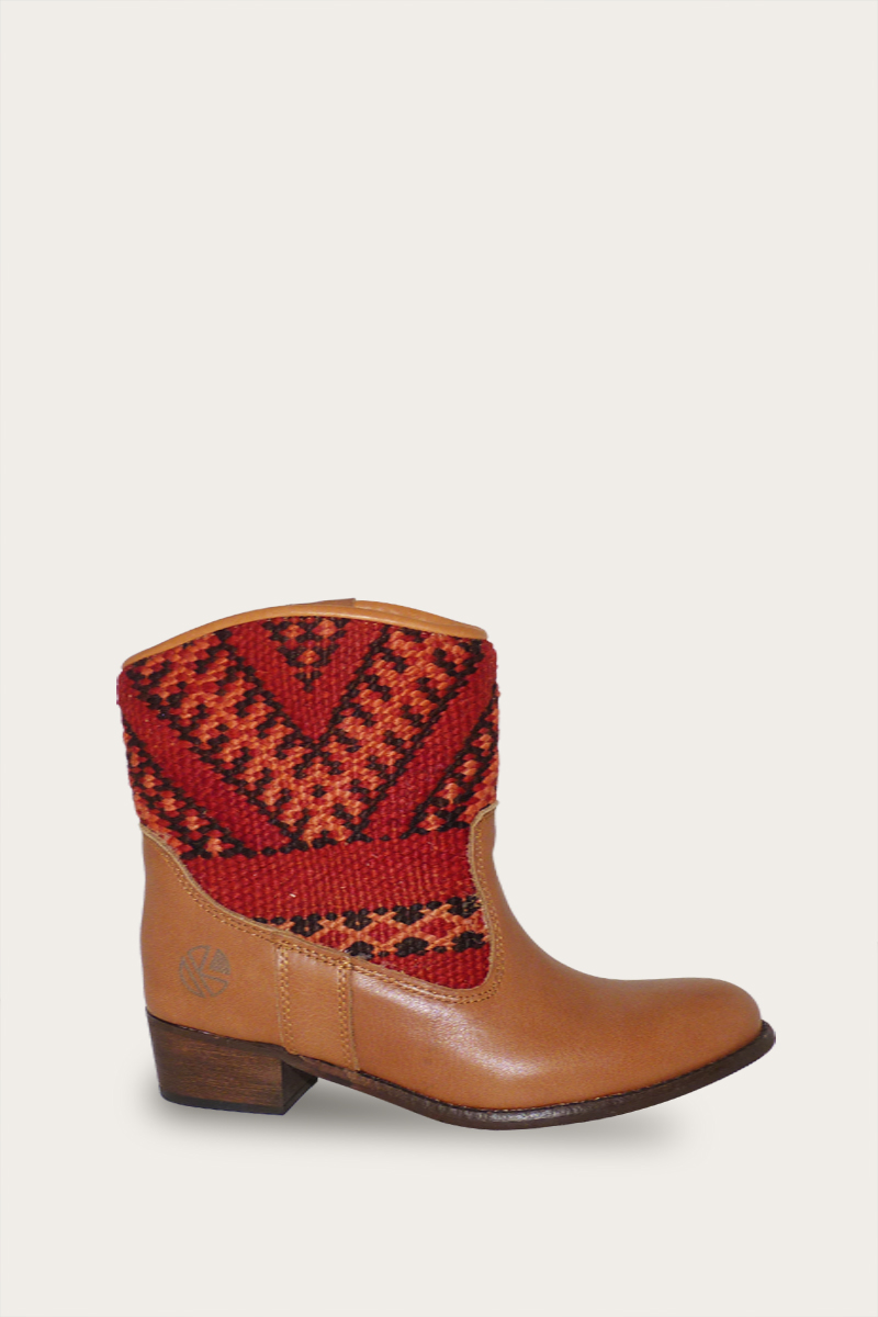 Our boots are handmade from the finest natural leather and authentic vintage Kilim
