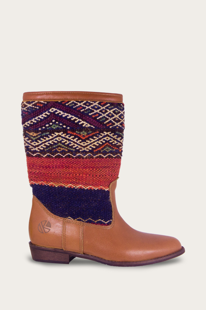 Our boots are handmade from the finest natural leather and authentic vintage Kilim